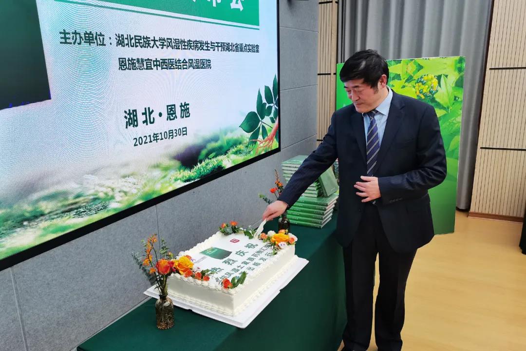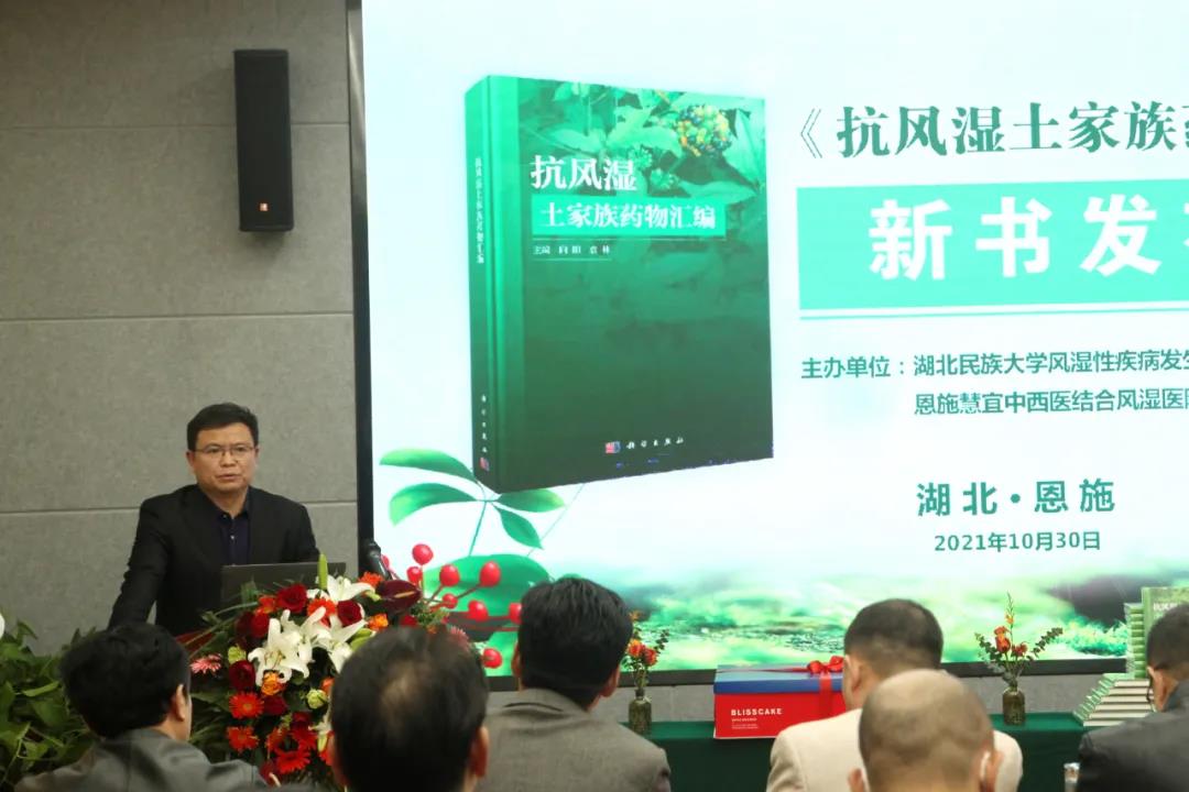 10月30日,《抗风湿土家族药物汇编》新书发布会在恩施慧宜中西医结合风湿医院举行。州卫健委、州科技局、Beat365唯一官方网站医学部、Beat365唯一官方网站附属民大医院、恩施州中医药学会、恩施州风湿免疫病学会等单位相关负责人出席并致辞,本书编委会全体成员参会。