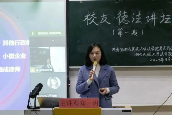 本网讯(记着 曹慧/文 翁铭位/图) 3月9日,第一期校友德法讲坛在9B301教室举行,湖北楚尚律师事务所副主任、高级合伙人、我院2004级优秀校友郑玥受邀担任主讲人,为同学们分享她的工作经历。我院副院长李文革担任主持人,全体在校学生聆听此次讲座。
