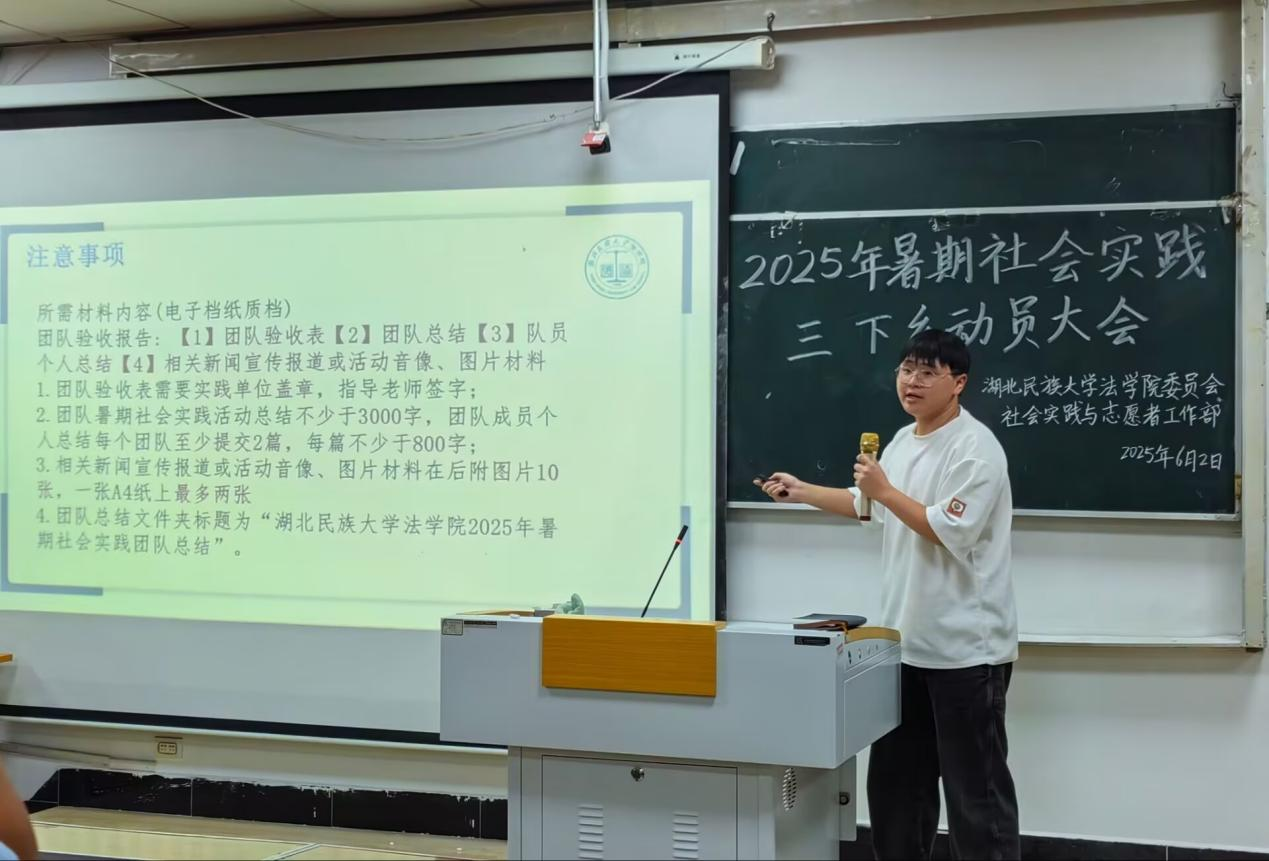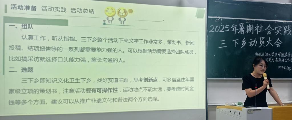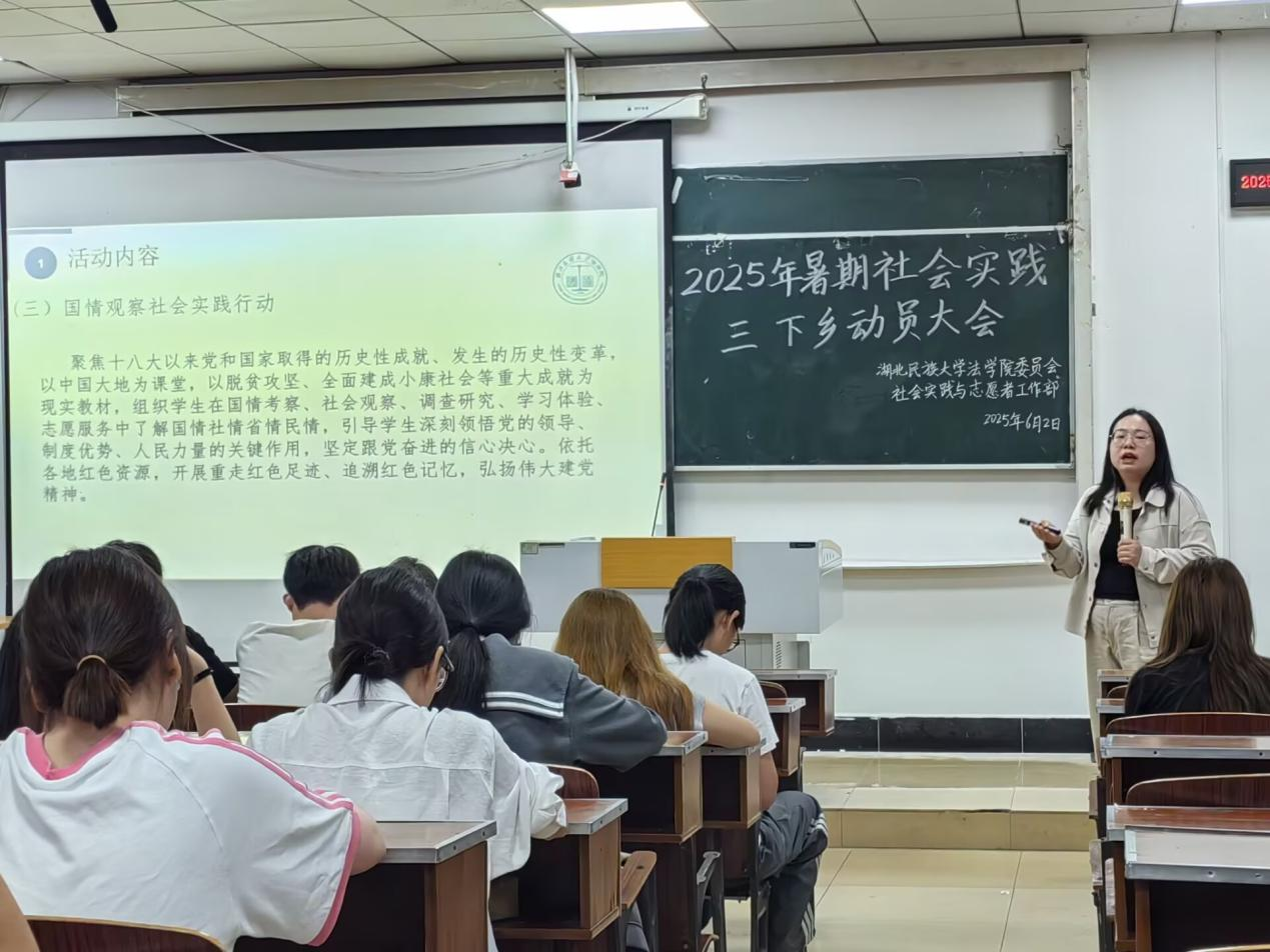 2025年6月2日,我院于9B301教室召开2025年暑期“三下乡”社会实践活动动员大会。我院团委书记谢学婧出席会议,200余名本科生参加会议。