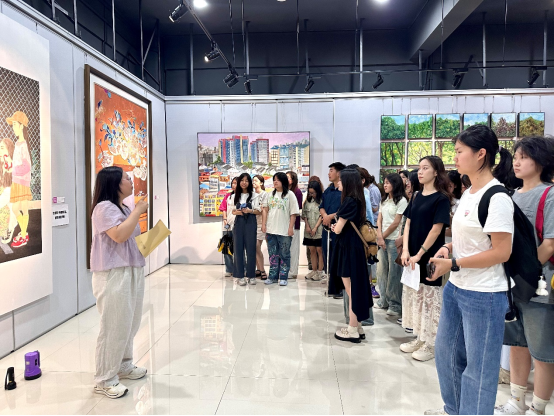 随后,同学们进入展厅参观毕业展。展厅内,绘画、雕塑、设计等各类作品琳琅满目,展现出创作者的独特视角与才华。学生在作品前认真欣赏并细细品味,在专业解读中深化理解认知,在沉浸式的观感体验中收获颇丰。
