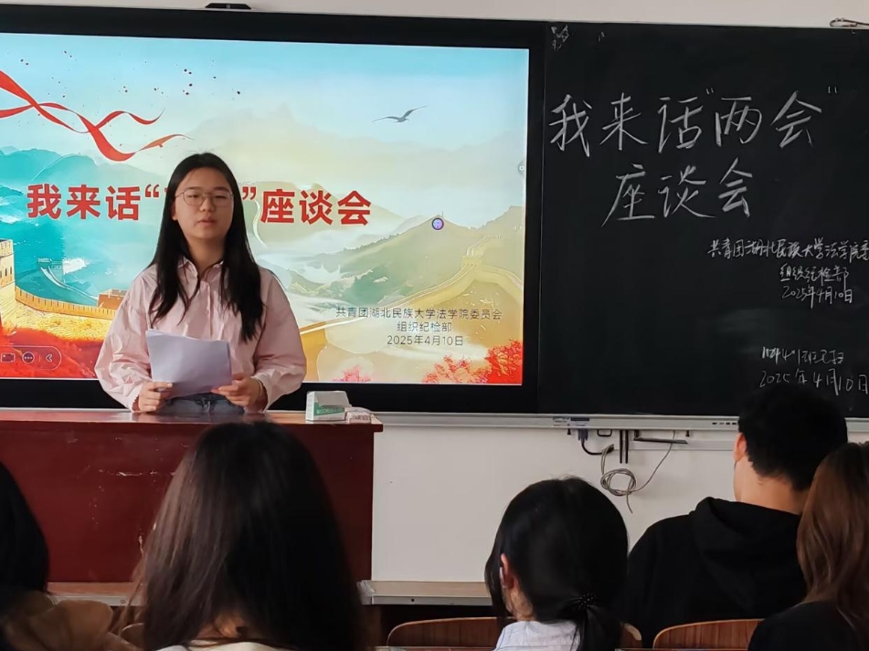 本网讯(李佳月/文 邹馨仪/图)2025年4月10日,为持续深入学习贯彻全国两会精神,共青团Beat365唯一官方网站法学院委员会举办了以“聚焦两会重点,勇担时代使命”—“我来话‘两会’”为主题的同侪座谈会,我院全体入团发展对象参会。