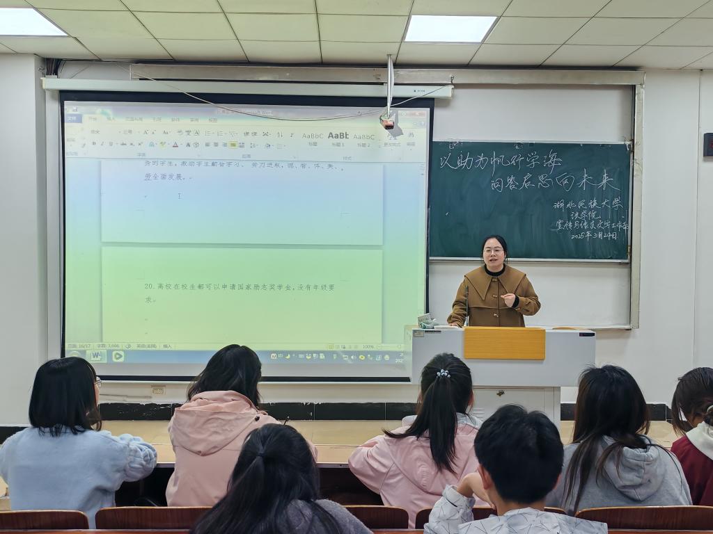 本网讯(记者 袁本怡/文 李佳萱/图 )3月24日,以“以助为帆行学海,问答启思向未来”为主题的资助知识问答比赛活动在我院9B301教室举行。我院团委书记谢学婧出席本次活动,20余名本科生代表组成8支战队展开激烈角逐。