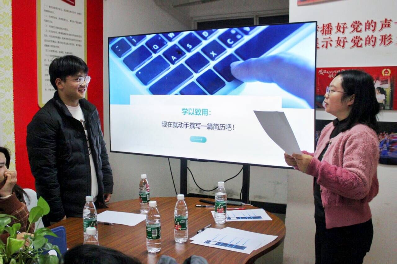 本次活动主要分为选岗指导和模拟求职两个环节。活动伊始,谢学婧老师向学生分享当今学习与未来职业的规划思路,建议学生从大一开始进行自我评估与匹配,在大学期间不断精进个人技能。随后,她从模拟选岗决策和演练这两个方面展开分析,提出各学生应当明确自身发展目标,关注并收集相关信息,学会分析比较不同岗位并做出个人最优化选择。接着,她列举我院成功就业学生的实例并结合社会优质就业案例,通过解读不同人的职业规划路径进一步阐述,告诉学生应当充分发挥所长并学会抓住机遇。最后,谢学婧老师指导学生着手制作个人简历,并对每位学生的简历作出点评并提出修改意见。