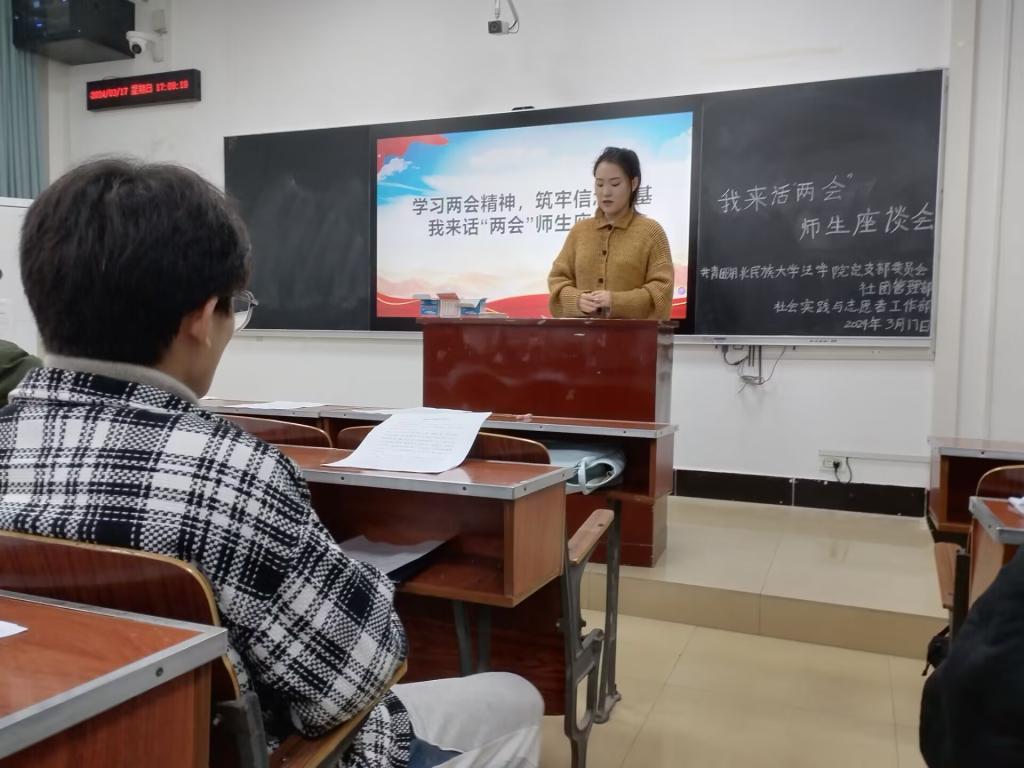 此次座谈会以政府工作报告、两会热词分享互动为切入点,通过师生座谈使同学们对两会精神的理解与把握更加深入具体,促进同学们提升政治判断力、政治领悟力、政治执行力,勉励同学们立足本职将个人“小我”融入国家和社会发展“大我”。(编辑 谢学婧 审核 黄晓波 签发 张明波)
