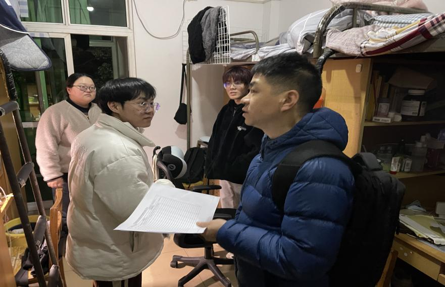 李建忠科长和王晶晶老师检查研究生寝室安全卫生