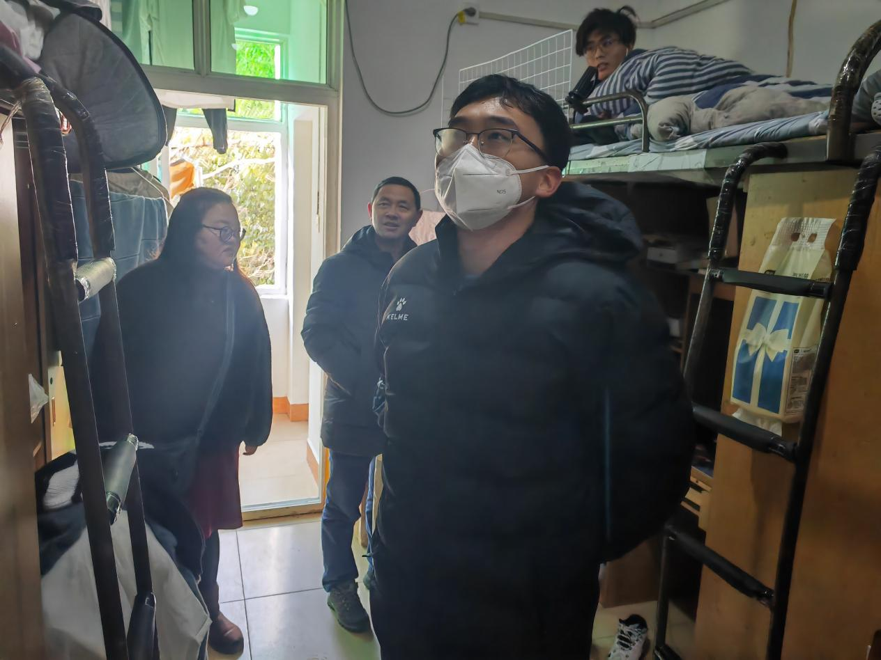 本网讯(王晶晶/文 宋书瑶、叶国森等/图)为落实学校工作安排,扎实做好学院安全工作,12月19日,法学院副院长李文革带队对研究生寝室进行了安全专项检查。研究生导师代表李华霖、辅导员王晶晶等参加了此次检查。