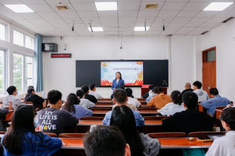 本网讯(见习记者 翁铭位/图)5月26日,学院党总支书记、院长汪燕教授在德智楼9B305教室讲授专题党课。我院2022年春季学期全体发展对象及在校预备党员参加学习。