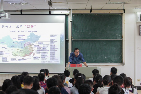 朱政老师从个人学习生涯谈起,向同学们讲述做好从高中到大学的角色转变的重要性,每个人都应该有一个明确的定位。他鼓舞新生在大学期间要不断强化自己的专业知识,要进行广泛的阅读,多方面地探索适合自己的发展道路。