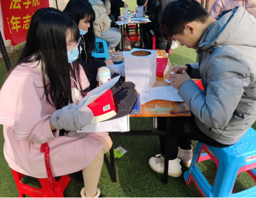 12月5日,我院于五环体育场举办以“弘扬法治,志愿先行”为主题的全“民”挑战赛普法志愿服务活动。本次活动设有“共书法律笔记”、“《民法典》你知多少”以及“词义对接我能行”三个环节。其中,在“共书法律笔记”环节,参与者需在《民法典》中自选一则法条并进行摘抄学习,推动参与者在翻阅和书写的过程中熟悉法律条文。“《民法典》你知多少”和“词义对接我能行”的环节以《民法典》为出题依据,考验参与者对《民法典》相关知识的掌握情况。“作为一名非法学专业学生,在平时的生活中很少能有机会接触法律,通过这样的活动能够让我增加对法律的了解,提高法律意识。”谈及此次活动的意义时,一位参与者如是说。