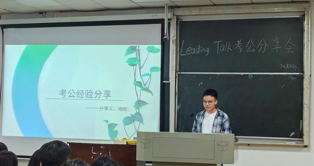 本网讯(记者 袁本怡 曾钰格 曾兰灵/文 李佳萱 李淑女 张吴凤仪/图)6月8日,我院于9A410、9A411教室举办2025年考公类毕业生交流分享会。本次分享会由我院团委书记谢学婧主持,邀请谯常彬、周乾坤、王玉婷、喻皓、汪杰5名毕业生代表进行经验分享,近400名本科生参加。