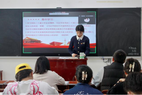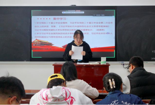 理论研学部分由胡美艳同志领学党的二十届三中全会精神、习近平在党的二十届三中全会第二次全体会议上的讲话、党章、《习近平新时代中国特色社会主义思想专题摘编》、习近平对高校党建和大学生思想政治教育工作的重要批示,杨舒婷同志领学习近平在全国民族团结进步表彰大会上的讲话、习近平在庆祝中华人民共和国成立75周年招待会上的讲话,罗金顺同志领学《中华人民共和国爱国主义教育法》《中华人民共和国国防教育法》,最后支部安排了恩施州委宣传部、组织部、州委理论信息中心印发的“支部主题党日”学习资料(第十期)等自主学习内容。