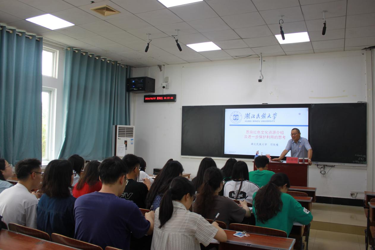 6月7日,我院教授邓辉煌在德智楼9B305教室为我院发展对象讲授“恩施州红色文化资源开发与利用”专题党课。