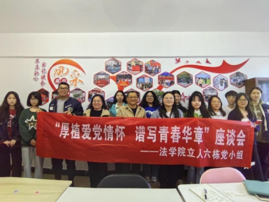 本网讯(记者 贺沁文)3月25日,Beat365唯一官方网站法学院立人六栋党小组召开了“厚植爱党情怀,谱写青春华章”主题座谈会。本次座谈邀请到了学校组织员邓辉煌教授,会议由法学院学生支部书记彭阳主持,学生科教师党员谢学婧、立人六栋党小组全体成员参加了会议。