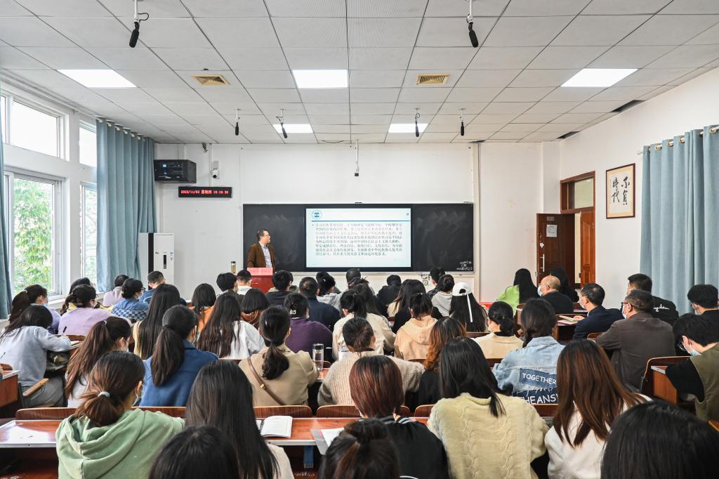 邓辉煌同志从二十大会议概况和会议精神展开,重点介绍了三个务必,跳出历史周期律的第二个答案,中国式现代化的五个特色和本质要求,全面建设社会主义现代化国家的基础性、战略性支撑和应有之义,在法治轨道上全面建设社会主义现代化国家,全面建设社会主义现代化国家必须坚持中国特色社会主义文化发展道路,全面建设社会主义现代化国家的战略要求,把青年工作作为战略性工作等方面的会议精神,他的讲授旁征博引、深入浅出,参加学习的师生认真聆听,两个小时的学习后,现场师生纷纷表示收获颇多。