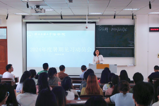 本网讯(记者 袁本怡/文 田伊俐/图 )6月28日,2024年度暑期见习动员会于我院9B301教室召开。本次大会由法学院教授冉艳辉主持,22级全体集中见习学生及指导老师参加。