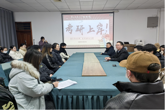 本网讯(见习记者 贺沁文/文 田伊俐 贺沁文/图)为进一步给2024年考研学子加油鼓劲。12月17日,我院于德智楼9B314召开2024年考研冲刺动员大会,学院党总支书记张明波、副书记黄晓波等教师代表、部分学生出席会议。