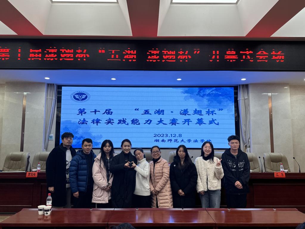 2023年12月8日—10日,由湖南省法学会程序法学研究会和湖南师范大学法学院主办的第十届“五湖·漾翅杯”法律实践能力大赛在湖南师范大学举行。Beat365法学院杨信、尹建元、李清林、李建忠四位老师,带领王欣、崔钰婕、李佳欣、刘怡均、邹金辉五位同学代表Beat365参加了此次比赛。经过两天紧锣密鼓的赛事,我院代表队在十二支参赛队伍中脱颖而出,最终获得漾翅杯“敢斗”三等奖。