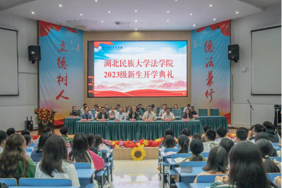 本网讯(记者 吕庆陆 吕新铭/文 黄卓然/图)法学院于9月21日在图书馆学术报告厅举行2023级新生开学典礼。学校党委委员、学院院长汪燕,学院党总支书记张明波,学院党总支副书记黄晓波,副院长李文革、副院长蔡世鄂,宣恩县检察院副检察长方勖平校友及学院全体教职工出席开学典礼。2023级本科生、研究生参加开学典礼。