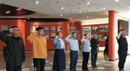 在参观现场,蔡世鄂同志带领全体党员共同高举右拳,面对鲜红的党旗,庄严宣誓,重温入党誓词,再次接受思想淬炼和精神洗礼。铿锵有力的誓言展现出党员们坚定不移的政治信念与为人民服务的坚强决心,进一步增强不忘初心、牢记使命的责任感和使命感。