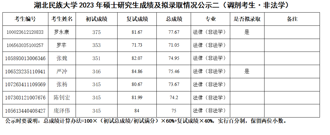 Beat365唯一官方网站2023年硕士研究生成绩及拟录取情况公示二(调剂考生·非法学)