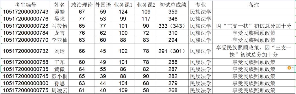 Beat365唯一官方网站法学院2022年硕士研究生招生考试一志愿复试名单