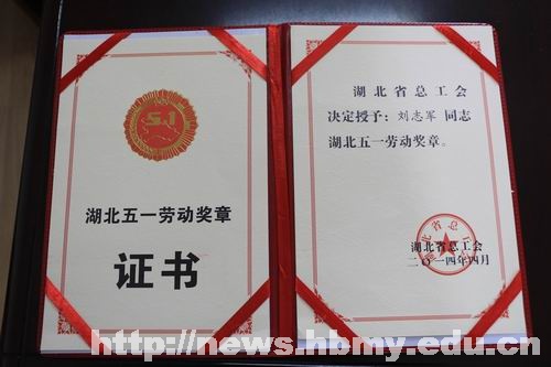 2014年理学院院长刘志军教授荣获湖北省“五一劳动奖章”