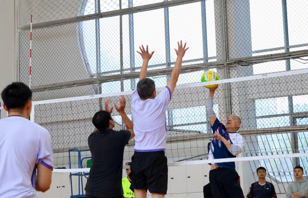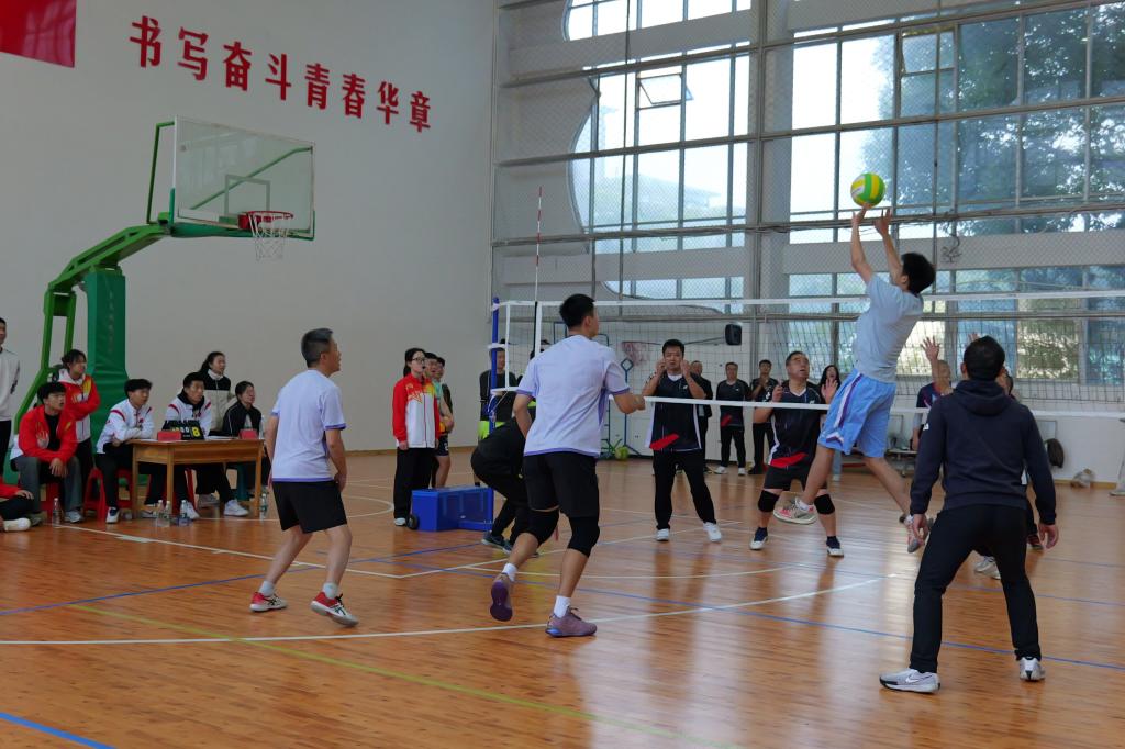 比赛现场,各参赛队伍奋力拼搏,配合默契。各代表队发球有力、接球沉稳、传球精准、扣球精彩。体育学院与化学与环境工程学院双方队员你来我往,比分紧咬。体育学院代表队凭借出色的身体素质和专业的球技,在关键时刻连连得分。女子组的外国语学院和林学园艺学院的比赛也毫不逊色。女老师们巾帼不让须眉,每一个球都全力以赴,精准的传球、扣球和拦网,都展示出他们高超的技巧和团队协作能力。场外观众热情高涨,加油声、喝彩声此起彼伏,现场气氛热烈。