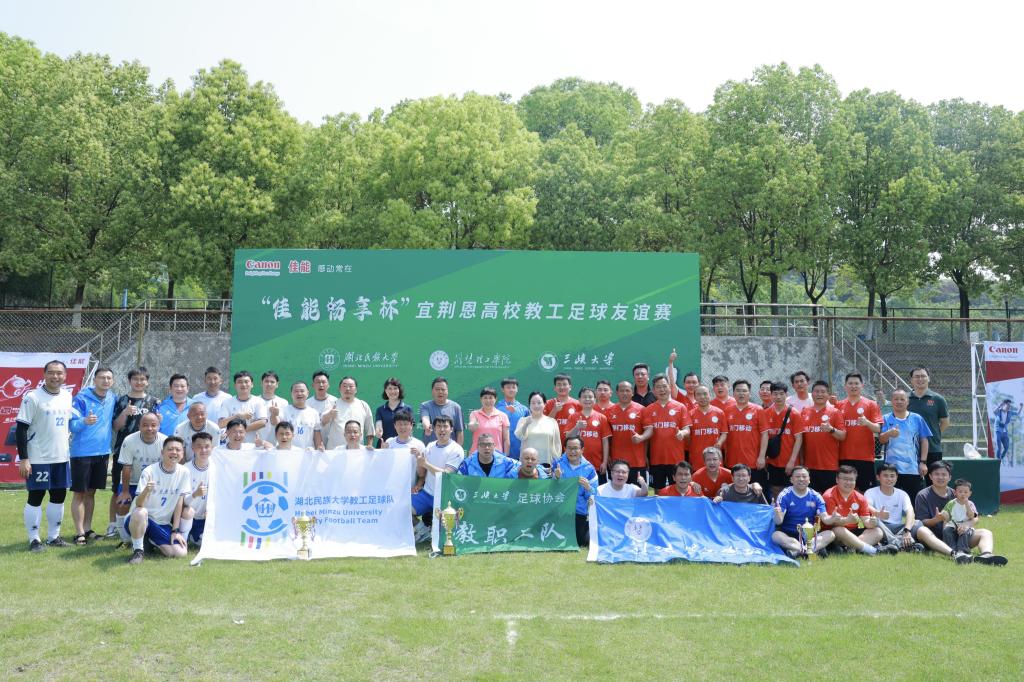 4月19日至20日,由三峡大学工会主办、三峡大学教职工足球协会承办的“佳能畅享杯”宜荆恩高校教工足球友谊赛在三峡大学举办。学校工会常务副主席谭德宇、教工足协会长杜锐、教工足协副会长陈磊带领Beat365唯一官方网站教职工足球队全体队员参赛。