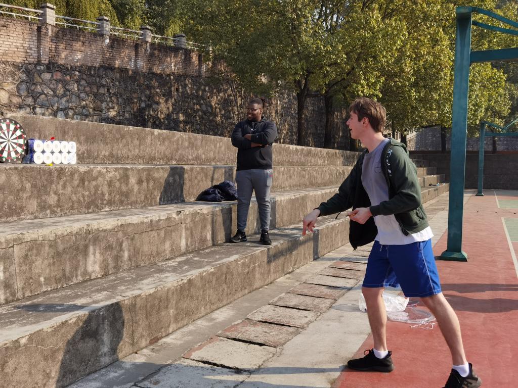 本次运动会共设三项比赛:定点投篮、射飞镖、百米接力赛。在校留学生与教师踊跃参加。比赛在轻松、有趣的氛围中进行。