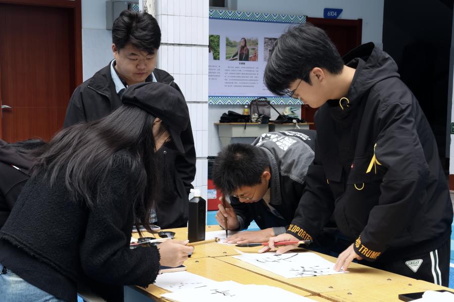 活动分为讲茶、制茶和游戏互动三个环节。活动现场,表演者与现场观众进行互动,指导新青年班成员和全体留学生现场制茶,帮助学生在实践中体会饮茶之道。游戏互动环节,参与者充分发挥想象,以“茶”为主题进行思考和自主创作,在工作人员的协助下创作出精美的茶杯和包装袋,用毛笔书写与“茶”有关的诗句、谚语,感受茶文化的底蕴与魅力。活动最后,参与者一同前往五环体育场参与撕名牌找出“茶王”,在活跃的气氛中不断加深对茶文化的印象。