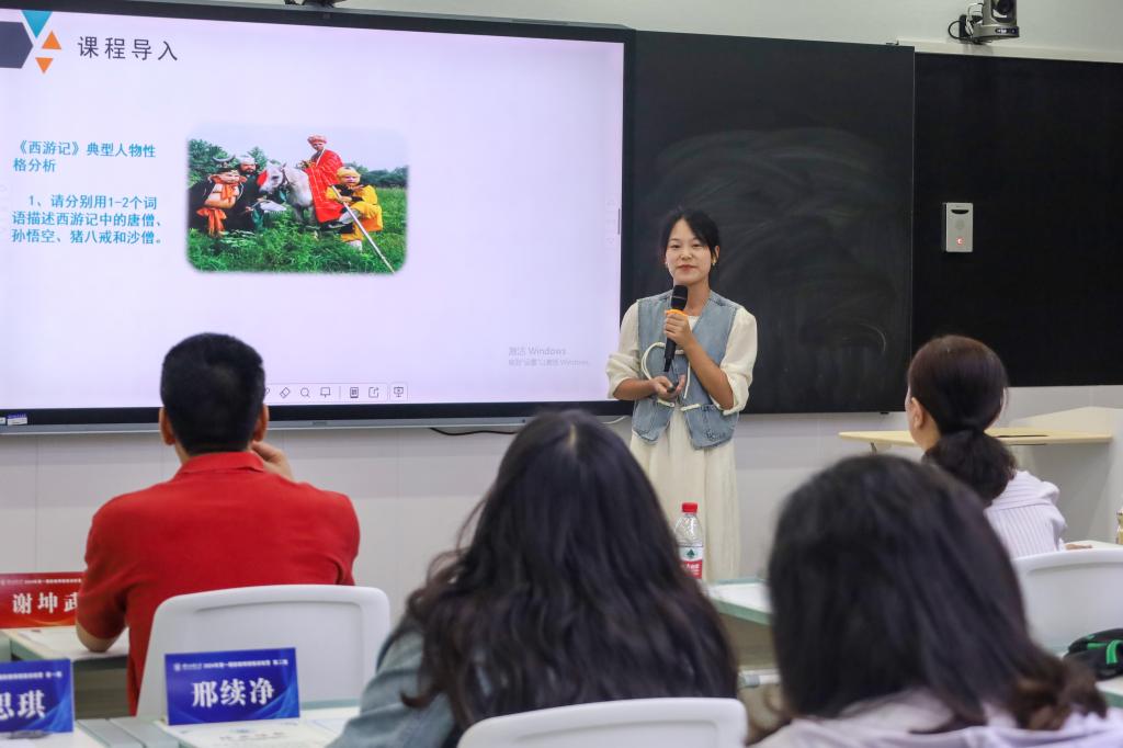 新教师代表曾思琪、邢续净、舒登维、刘竑均、吴奇睿、谭杰、刘国强等七位老师依次进行了成果汇报和试讲,唐卫青、张源和洪佳丽依次进行了点评。谢坤武宣读了《关于表彰Beat365唯一官方网站2024年第一期新教师微格训练优秀学员的通知》,唐卫青老师为优秀学员颁奖。