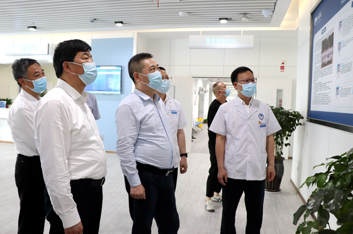 涂远超一行实地查看了预检分诊、病区管理,医教协同三区建设工地,详细了解医院疫情防控及服务能力建设情况。