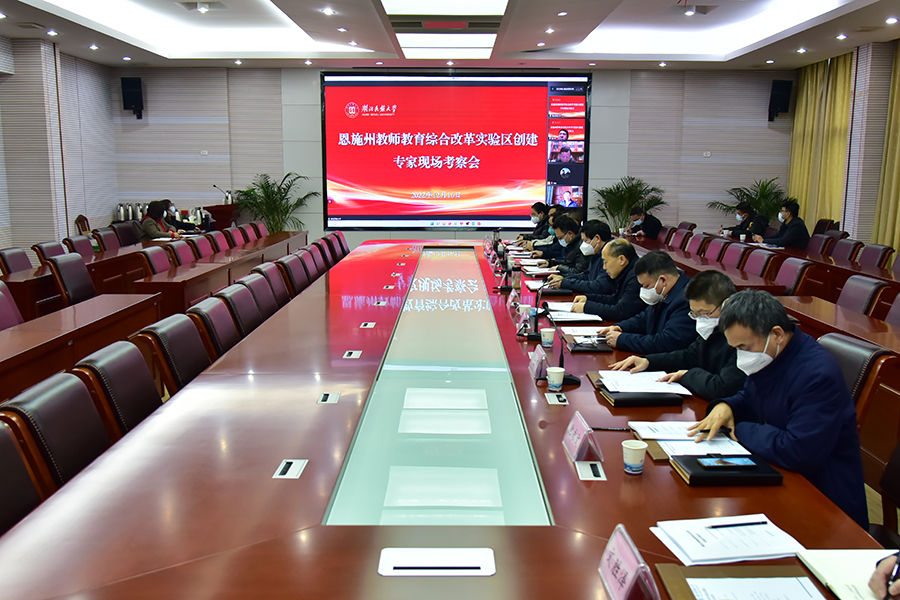 根据省教育厅省级教师教育综合改革实验区建设工作安排,12月16日上午,湖北第二师范学院副校长田恒平教授带领专家组对恩施州教师教育综合改革实验区创建工作进行考察。考察会议采取线上线下相结合的方式进行。学校党委副书记、副校长汪兴平出席会议。党委常委、副校长李军主持考察会。