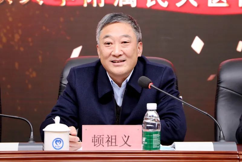 顿祖义在讲话中指出,2022年是附属民大医院不平凡的一年,医院是全州新冠重症患者救治的主要力量,医院职工舍小家顾大家,奋战在与病毒抗争的最前沿;医院在医疗、教学、科研、院区建设、党建等各个方面实现了重大突破,医院的发展步入快车道。