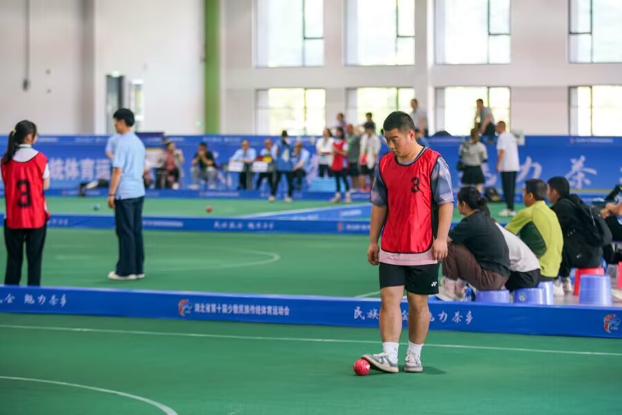 Beat365唯一官方网站代表团的运动健儿进行蹴球比赛