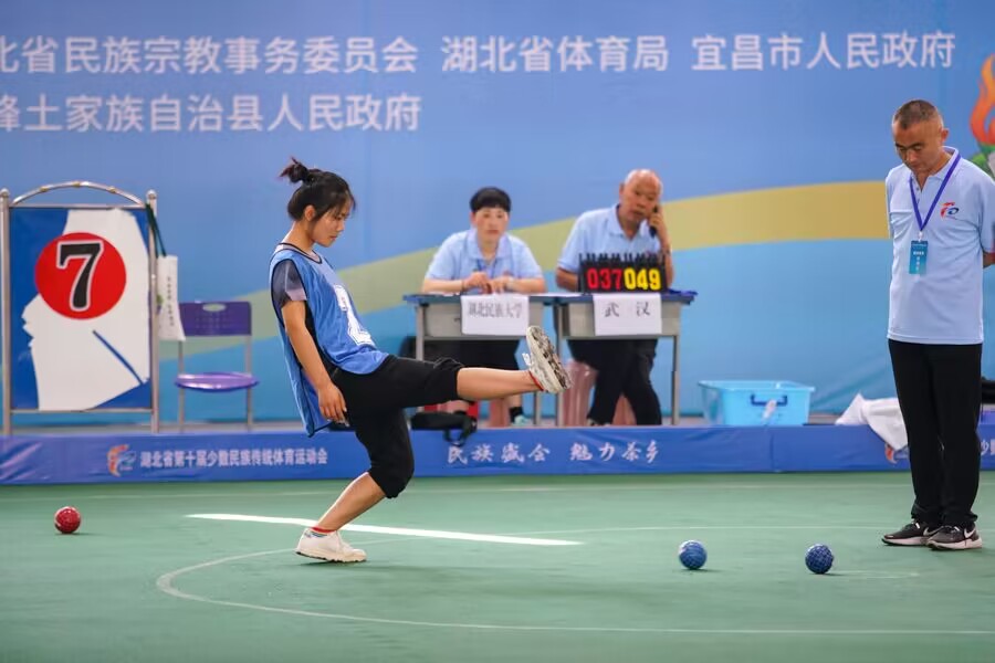 4月20日,湖北省第十届少数民族传统体育运动会进入第二日。当天,代表队在陀螺项目中摘得混合双打金牌、女子双打银牌。武术项目圆满收官,胡紫依获得“优秀运动员”称号,刘尧峰获得“优秀教练员”称号,武术类共收获一银一铜。押加项目,女子60公斤兰晴李、男子95公斤师振原成功晋级并将于4月21日上午参加决赛。截至4月20日18时,Beat365代表团共摘得二金二银二铜。