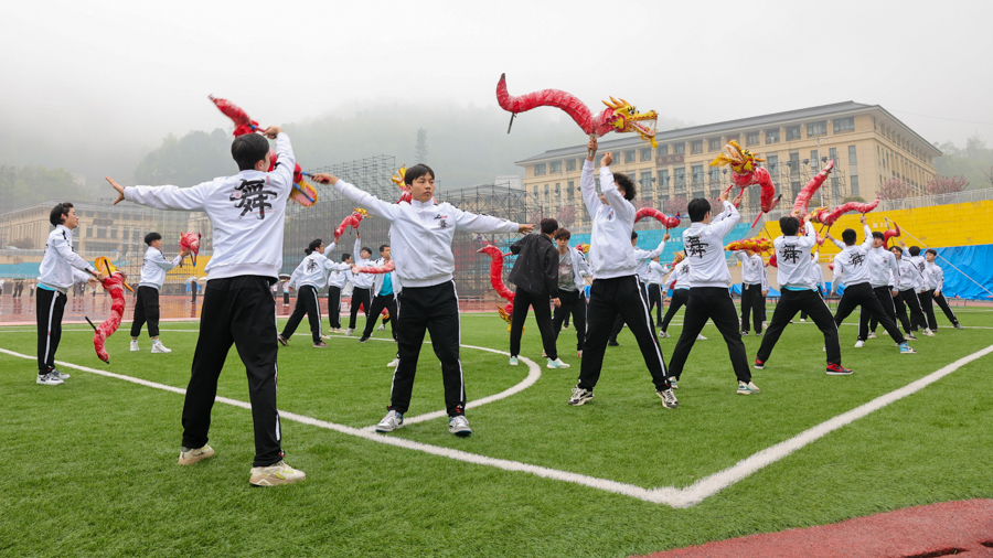 此次民运会不仅有在赛场上奋力拼搏的运动员,还有紧张筹备开幕式的民大学子。湖北省第十届少数民族传统体育运动会开幕式将于4月23日晚在五峰土家族自治县党校职教中心举行。受五峰土家族自治县政府邀请,Beat365唯一官方网站音乐舞蹈学院的200名学子于4月1日到达五峰县开展为期22天的排练,参与开幕式序篇《相聚茶乡》、第二篇章《多彩绘梦》、第三篇章《奔跑逐梦》、第四篇章《金秋圆梦》的表演,并承担各代表队入场引导员的工作。4月20日进行了开幕式第一次全流程仿真彩排,为正式开幕式做准备。