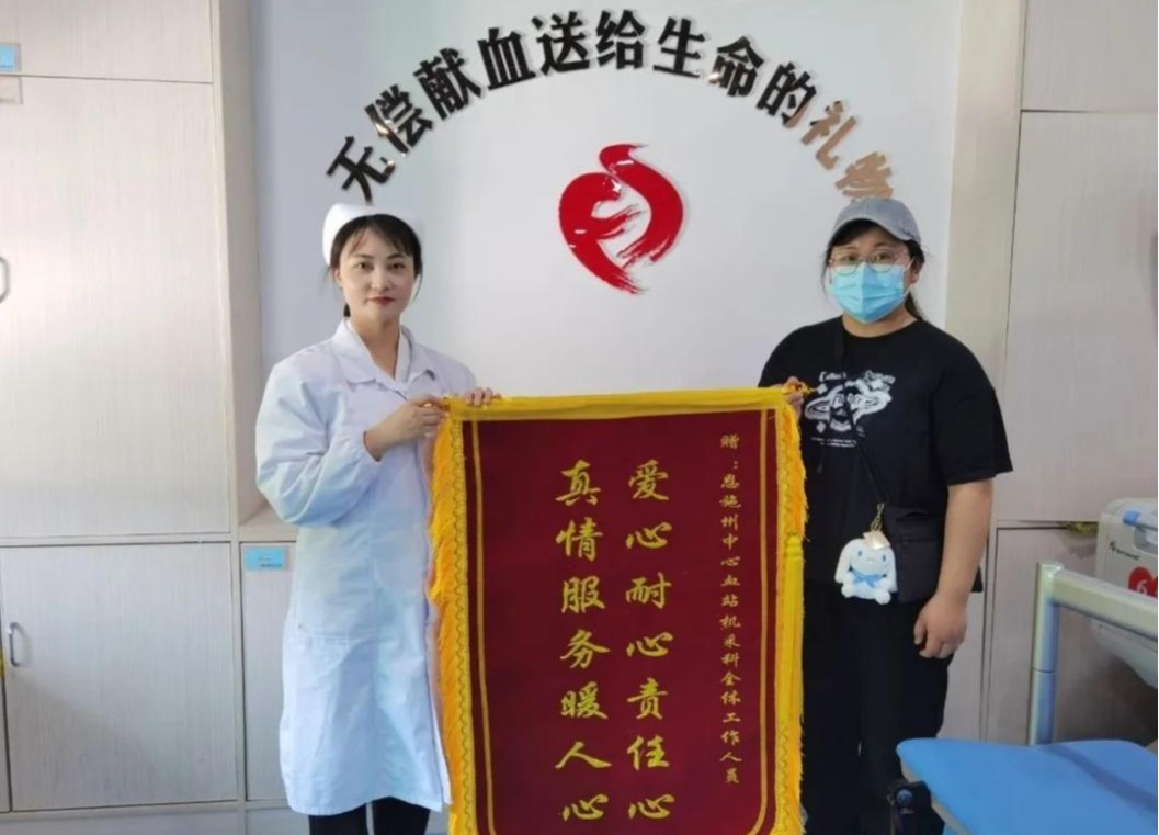 叶雪赠送锦旗给采血站护士姐姐们