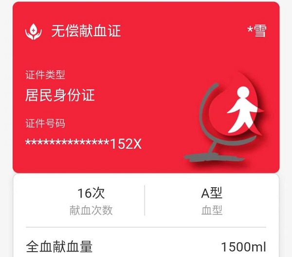 叶雪的电子献血证截图