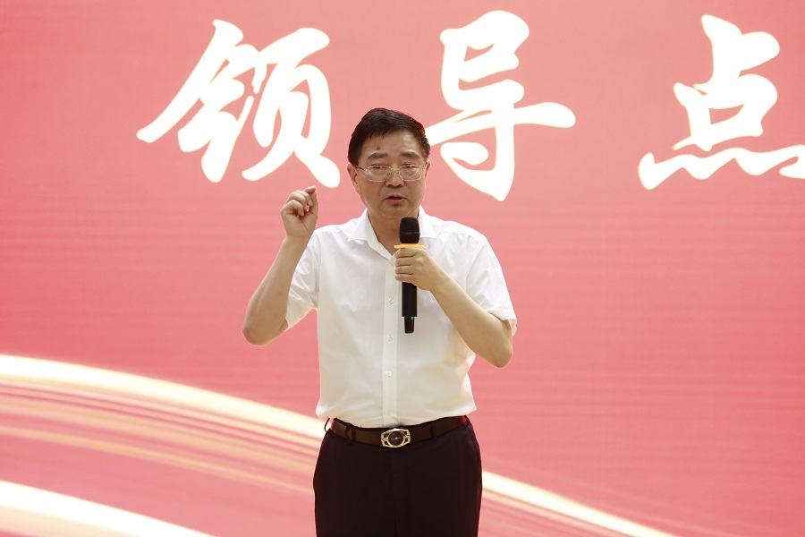邓磊在点评中指出,辅导员素质能力大赛是学校开展学习贯彻习近平新时代中国特色社会主义思想主题教育的重要活动,也是一场思政大课,选手从不同选题进行了一场精彩的汇报演讲,特色各异、精彩纷呈。他从比赛具有设计的科学性、工作的考察性、成长的导向性三个方面对比赛作了评价,从讲、做、思、写四个方面对辅导员应具备的能力作解释和强调,并对全体辅导员寄予厚望。