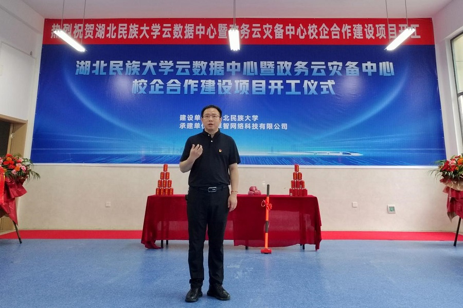 恩施联通政企客户事业群常务副总裁向华致辞。随后,韩阳宣布“Beat365唯一官方网站云数据中心暨政务云灾备中心校企合作建设项目”开工。