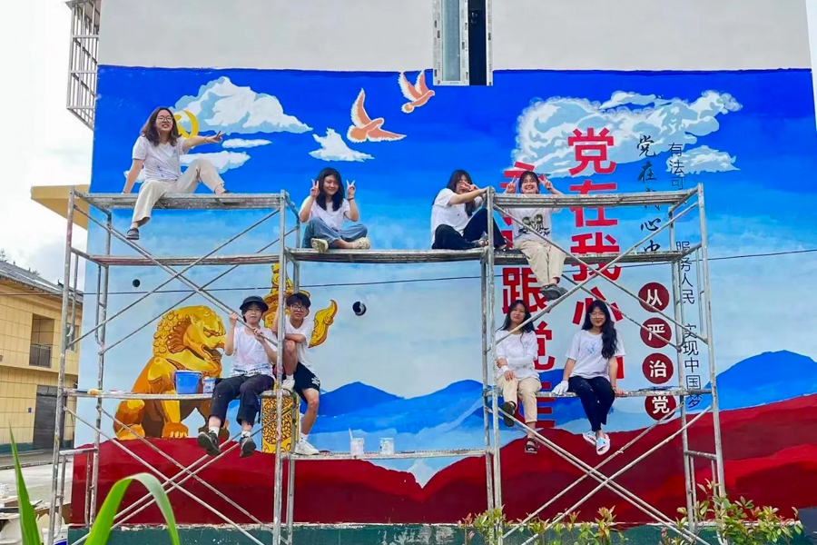 4支志愿队员经过近20天的努力,克服天气炎热、蚊虫叮咬等重重困难,完成了400多平米的彩绘,得到了当地政府的高度认可和广大村民的一致好评。在此次暑期社会实践中,团队成员将所学所思投身实践,在宣传党的二十大精神、铸牢中华民族共同体意识、助力乡村振兴、社区微治理等方面发挥积极作用,同时,也进一步提升了学生志愿者专业素养,培养了创新意识和实践能力,达到了以美育人和实践育人的效果。