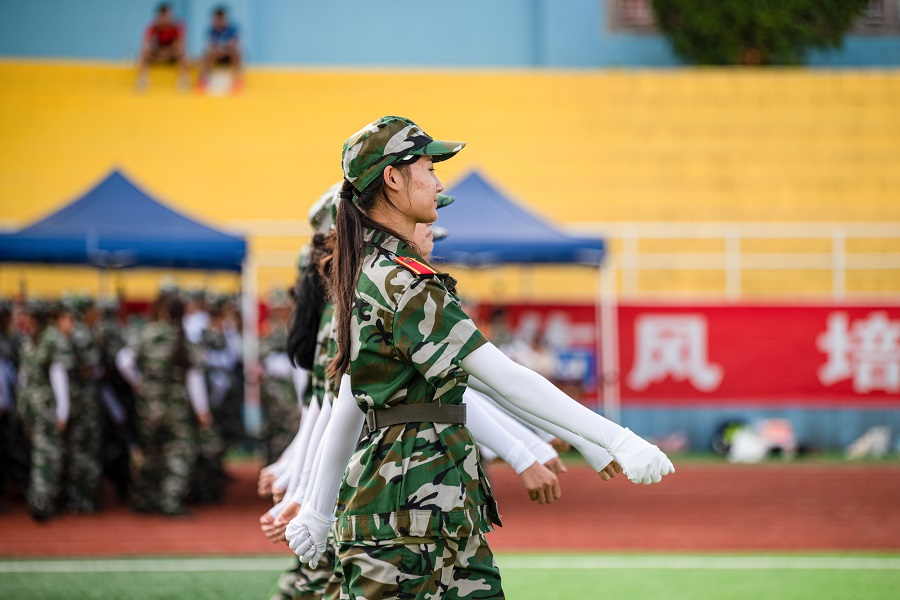 9月11日,2023级4594名本科新生正式迎来为期14天的军训。军训团下设4个营,以二级学院(部)为单位编设16连,整组编设60个排,分别在民族体育场、五环体育场进行军事训练。