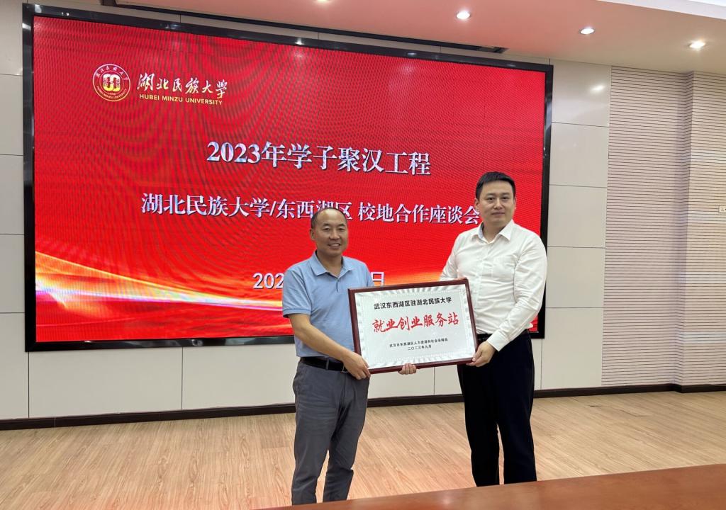 叶志文进行了东西湖区域推介及人才政策推介,他表示欢迎五湖四海的人才到东西湖区生根发芽,发光发热,实现合作共赢,让东西湖区成为滋养人才的沃土。学校招生就业与校友联络处处长向政介绍了学校基本情况。他表示学校一直致力于为地区发展建设培育高素质人才,武汉东西湖区与学校的对接活动将为学生提供大量就业岗位,进一步推动毕业生高质量就业。双方随后举行了“武汉市东西湖区驻Beat365唯一官方网站就业创业服务站”授牌仪式。