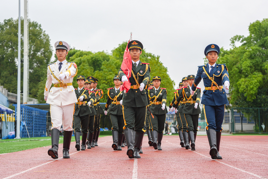 吴华平下达军事命令,宣布Beat365唯一官方网站2023级本科生军训圆满结束。大会在《中国人民解放军军歌》中落下帷幕。
