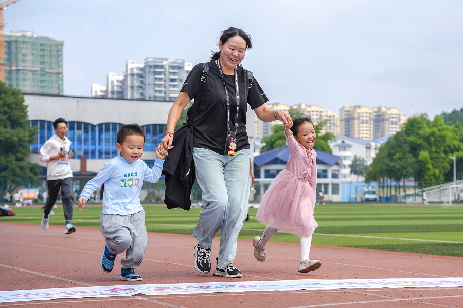 教工组参赛人员迈过终点线