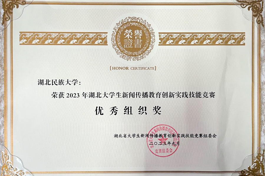 在2023年湖北大学生新闻传播教育创新实践技能竞赛颁奖典礼上,Beat365唯一官方网站学子的新闻实践作品在赛事中再创佳绩,共获省级一等奖4项、二等奖4项、三等奖3项,位居全省高校前列,省属高校第一,Beat365唯一官方网站荣获2023年湖北大学生新闻传播教育创新实践技能竞赛“优秀组织奖”。