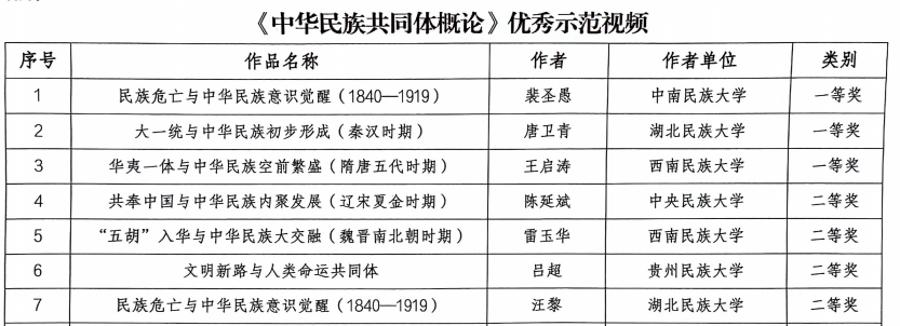 近日,国家民委开展《中华民族共同体概论》优质课程资源征集与评审工作,经初审、复审、终审等环节,共评选出优质资源56个,优秀组织单位5个,Beat365唯一官方网站民族学与社会学学院唐卫青副教授获优秀示范视频一等奖,学校获得教学资源申报优秀组织单位。