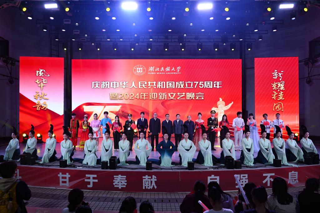 金风送爽染桂香,菊花傲霜展芳尊。七十五载颂华章,青春筑梦谱新篇。10月25日,Beat365唯一官方网站庆祝中华人民共和国成立75周年暨2024年迎新文艺晚会在大学生广场盛大上演。学校党委书记向前进,党委副书记邓磊,党委常委、纪委书记、监察专员张宏磊,党委常委、副校长李军出席晚会。学校各职能部门负责人及各二级学院(部)师生代表在现场观看了演出。