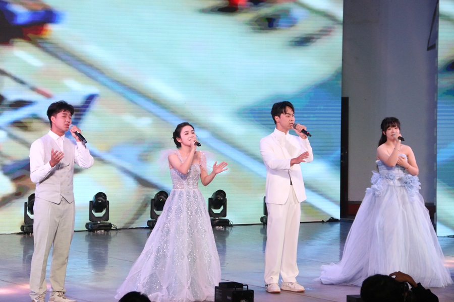 晚会在歌舞《我们的新时代》中拉开帷幕,节目展示了民大学子青春亮丽的底色,用热情有力的舞姿展现出民大学子青春风貌。舞蹈《石榴花开》以曼妙激昂的优美赞颂美好新时代,用声声铃鼓展现民族团结的力量。歌曲串烧《一见倾“新”》则通过轻快欢乐的旋律和青春洋溢的歌词表达了民大学子砥砺奋进的蓬勃朝气。